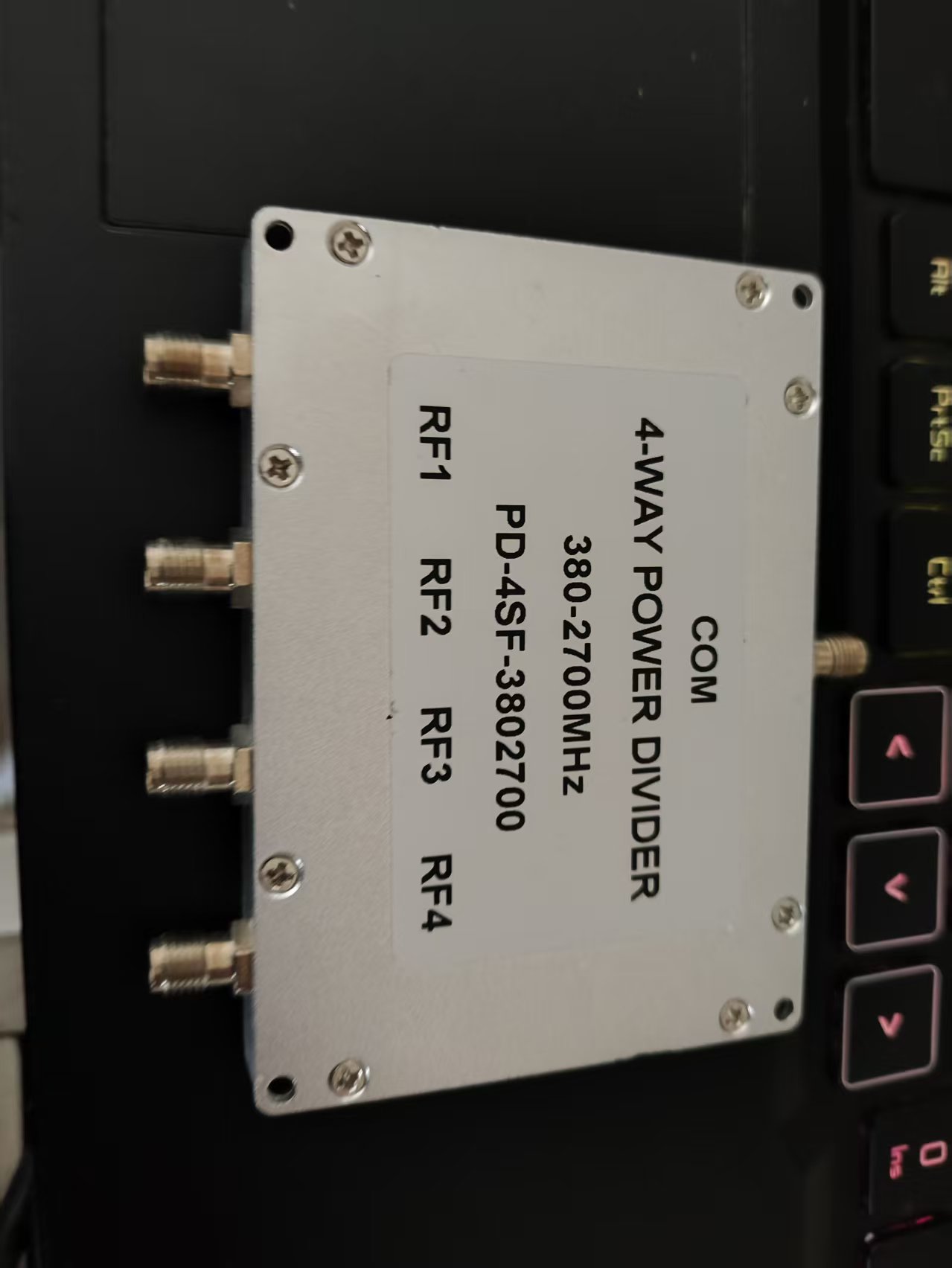 由于 2 路功分损坏(没有外壳,射频端口断掉了),暂时使用 4 路功分作为合路器,如下图所示: