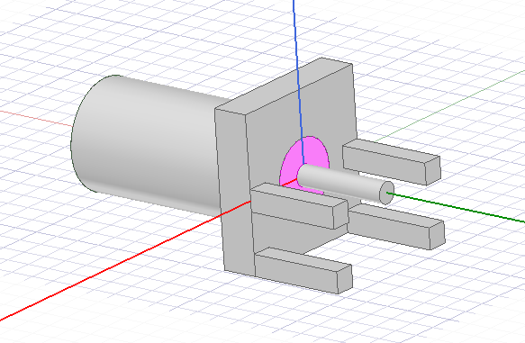 尝试对偏脚 SMA 接头进行仿真,螺纹、内导体外薄薄的一层导体环可以忽略,HFSS 模型如图 20 所示:
